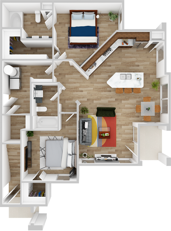 Our floor plans are expertly tailored to maximize the use of floor space and counter space, streamlining the function, flow, and overall feel of each home. Modern colors and sleek design offer a stylish aesthetic that can be personalized to suit your decorative tastes.